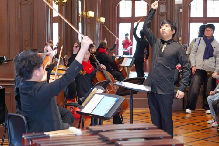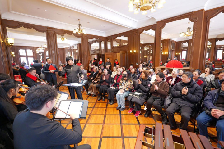 事实上,这份“倾听”早已不局限于镜厅的四壁。上音校园开放以来,更将一大批优质音乐会、讲座面向全社会预约体验。从“华夏器韵”展览中的陨铁编磬与AI技术碰撞,到音乐城堡前的学生快闪,再到如今镜厅里的新春音乐会,这所地处衡复风貌区的百年学府,正用最柔软的方式,打破着物理与心理的双重围墙。两年来,已有43万人次的市民通过网上预约走进上音校园。