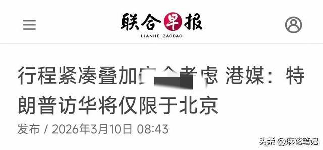 而且,根据香港《南华早报》报道,特朗普这次在行程方面也做了更改,只打算在北京短暂停留,未安排其他城市访问。